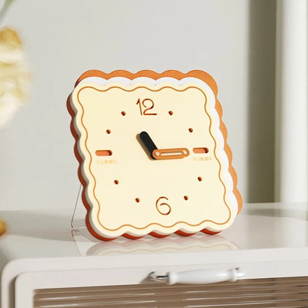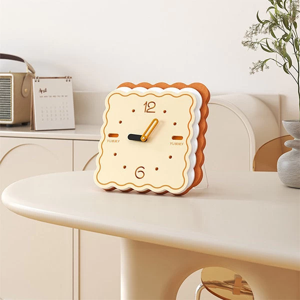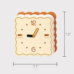 The Biscuit Clock is a delightful and charming timepiece that adds a playful touch to any room. Inspired by the shape and design of biscuits, this clock features a round face with vibrant yellow and orange colors, reminiscent of the warm and inviting hues of freshly baked treats. With its cheerful colors and fun aesthetic, the Biscuit Clock is not only a functional timekeeping device but also a decorative piece that brings a smile to your face. Hang it on the wall or place it on a desk or shelf to add a touch of sweetness to your space.