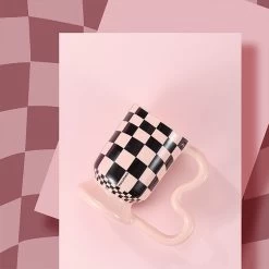 Enjoy your favorite hot beverage in style with the Checkerboard Ceramic Mug, a chic and trendy addition to your drinkware collection. This eye-catching mug, crafted from high-quality ceramic, features a classic checkerboard pattern that is both visually appealing and timeless. The Checkerboard Ceramic Mug is perfect for sipping coffee, tea, or hot chocolate at home or in the office, adding a touch of sophistication to your daily routine while providing a cozy and comfortable drinking experience.