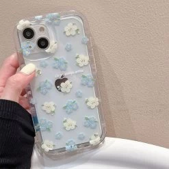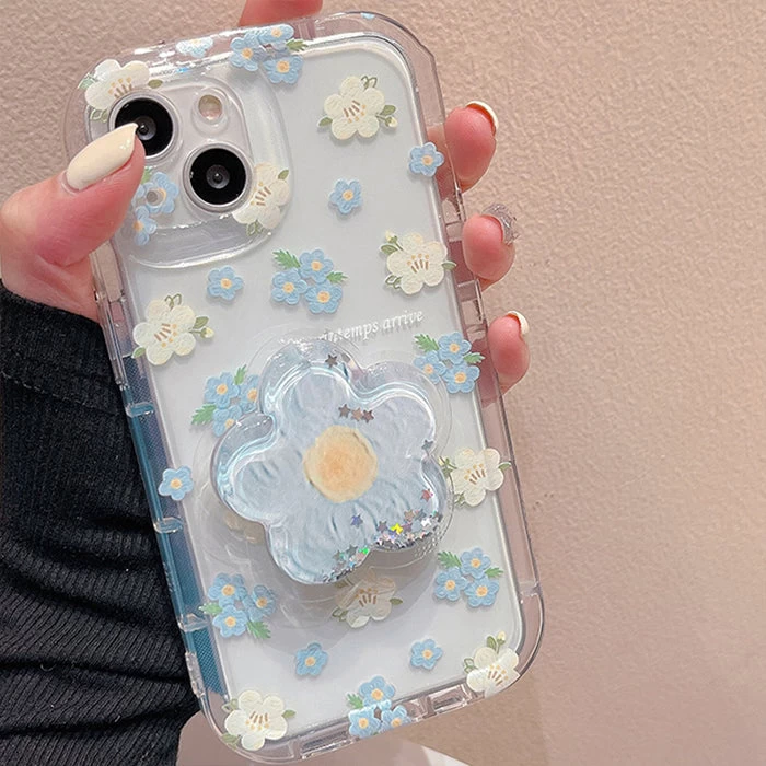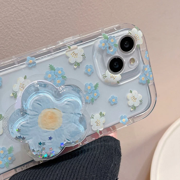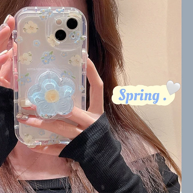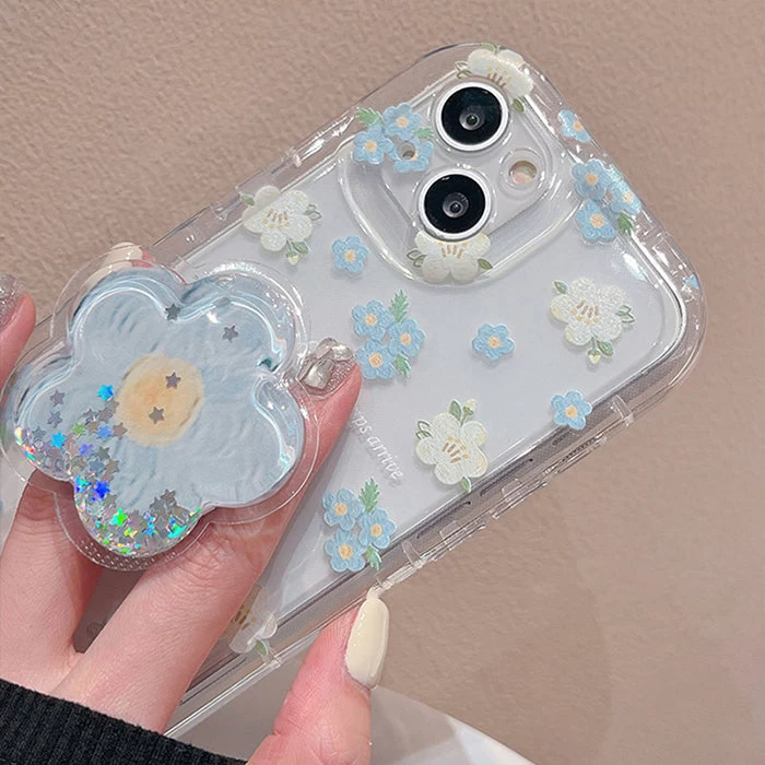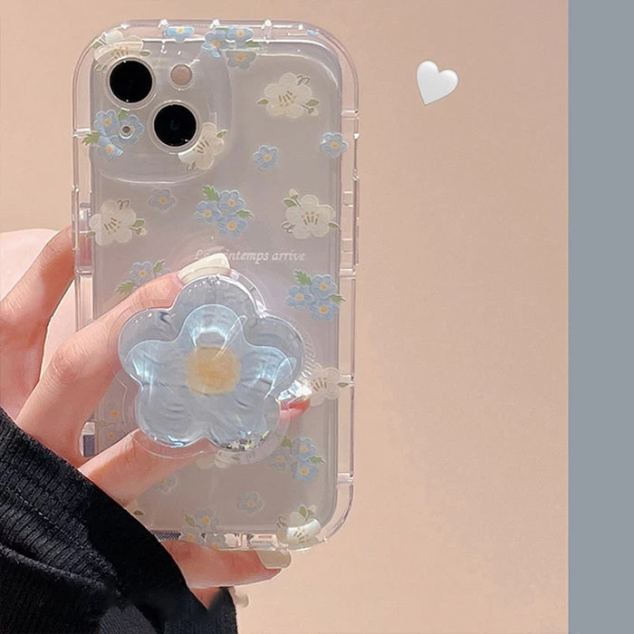 Get a chic and artsy look for your iPhone with our blue transparent floral case. It features a Korean inspired design and comes with a built-in stand for hands-free viewing.