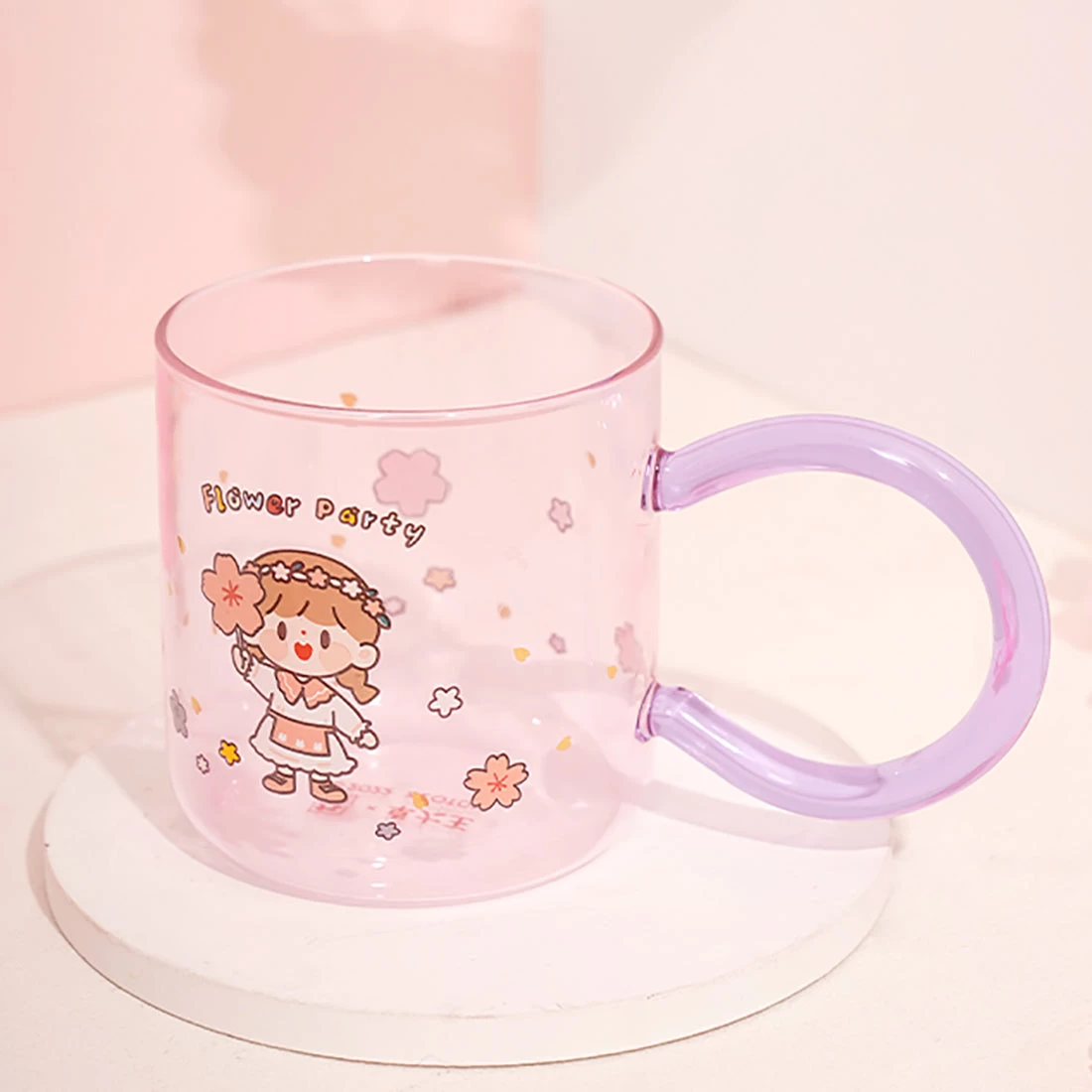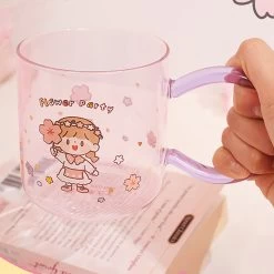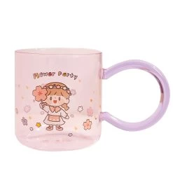 Cute Cartoon Girl Flower Party Glass Cup With Spoon