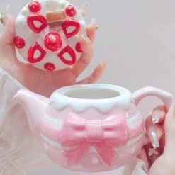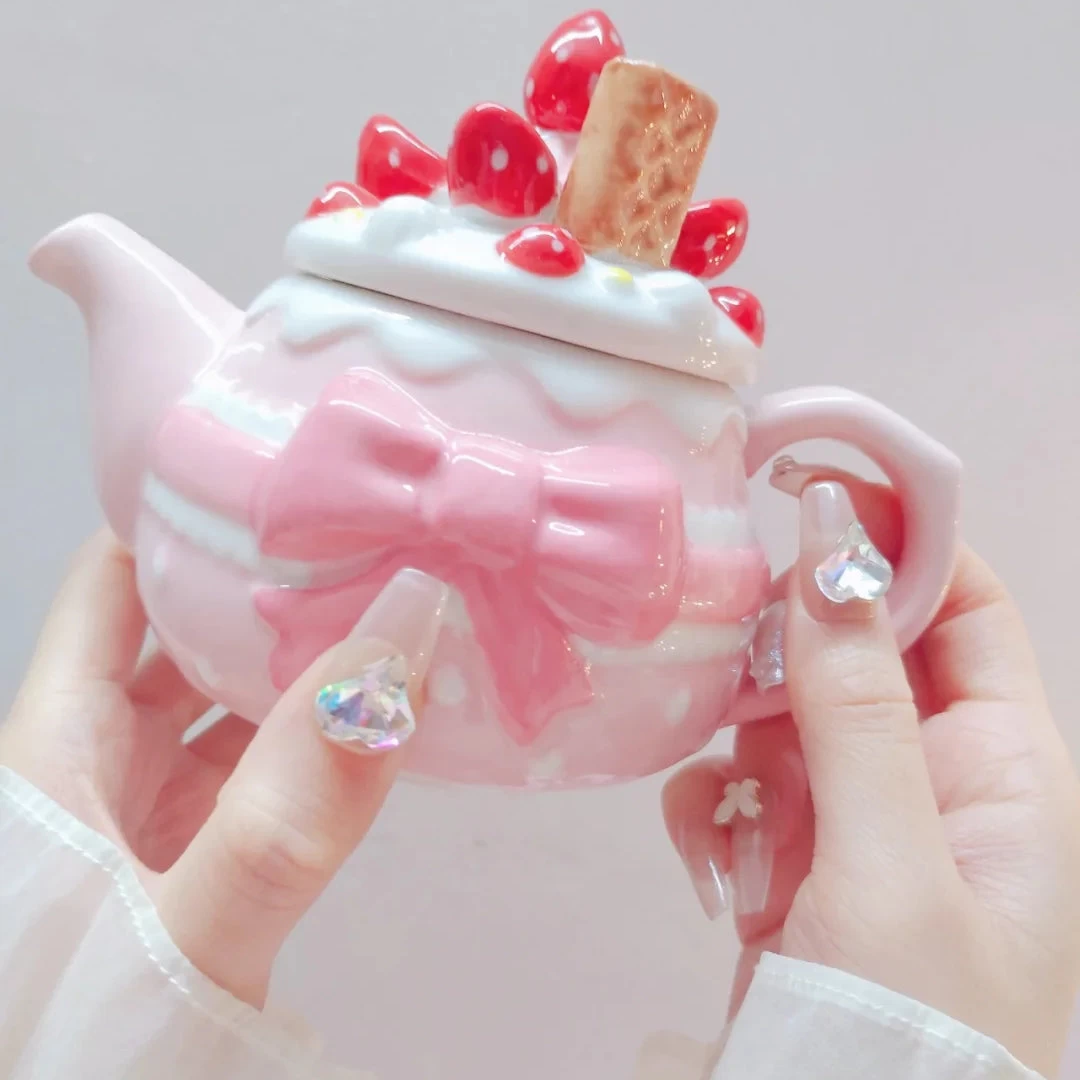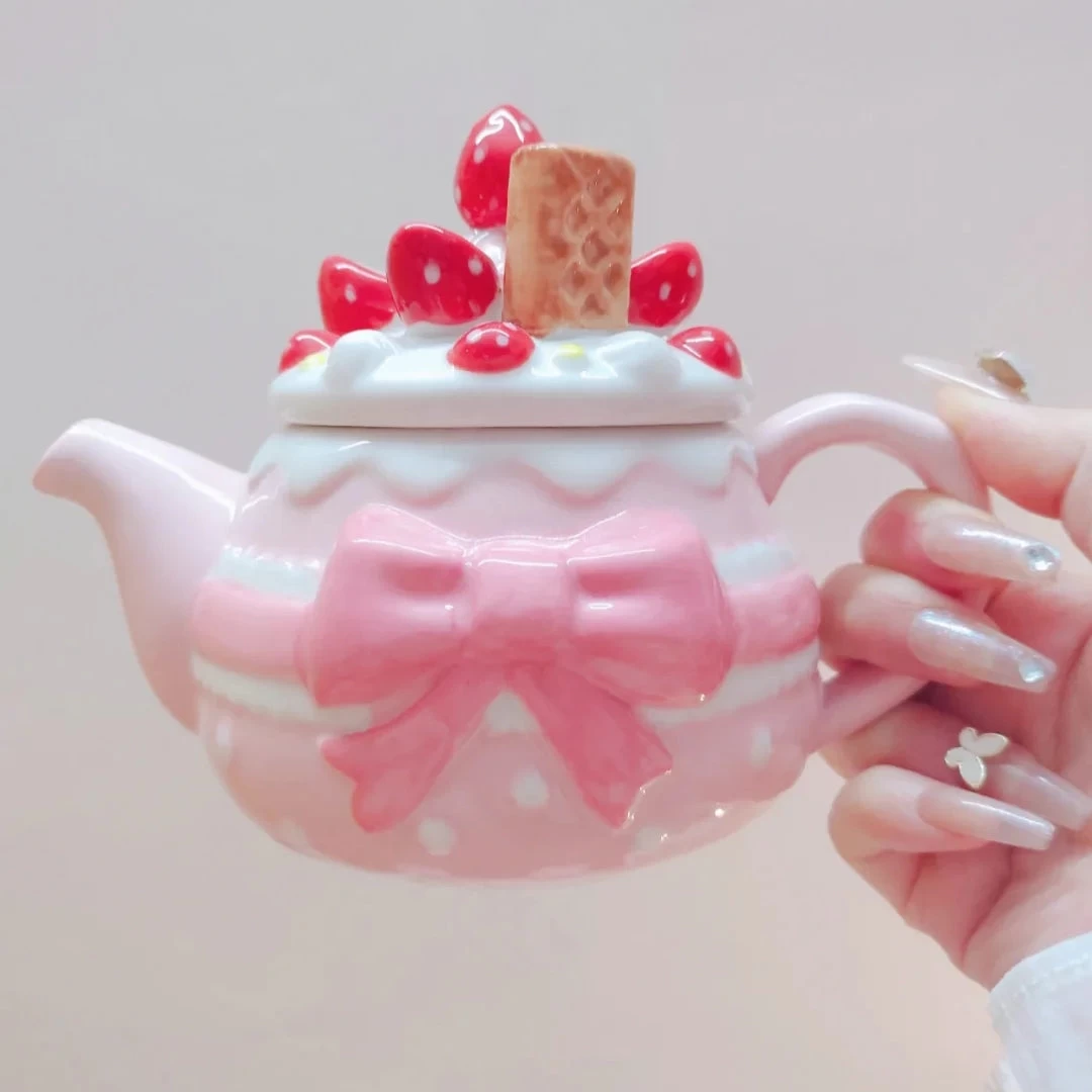 Cute Strawberry Bowknot Teapot