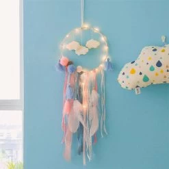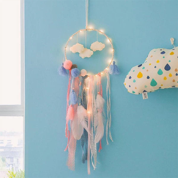 Fluffy white clouds, feathers and poms poms, oh my! This DIY Cloud Dream Catcher brings a sweet magical touch to a nursery or bedroom.