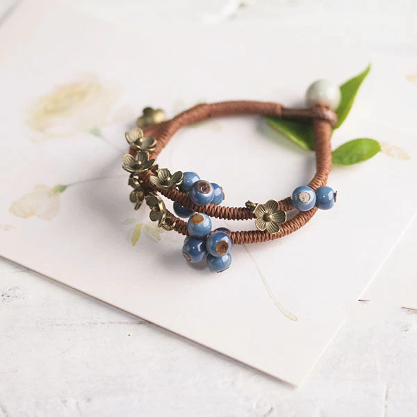 This gorgeous piece is made with high-quality ceramic and copper that’s polished to a lustrous shine. The focal point of the bracelet is a cluster of blueberries that are surrounded by beautiful copper flowers. The end result is a piece that’s both beautiful and eye-catching.