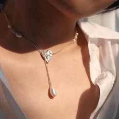 Express love and elegance with our Heart Pendant Necklace. The beautifully crafted heart-shaped pendant with a sparkling gemstone accent is complemented by a delicate freshwater pearl drop, offering a balance of sophistication and charm. Suitable for everyday wear or special occasions, this necklace is a stunning addition to any jewelry collection.