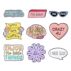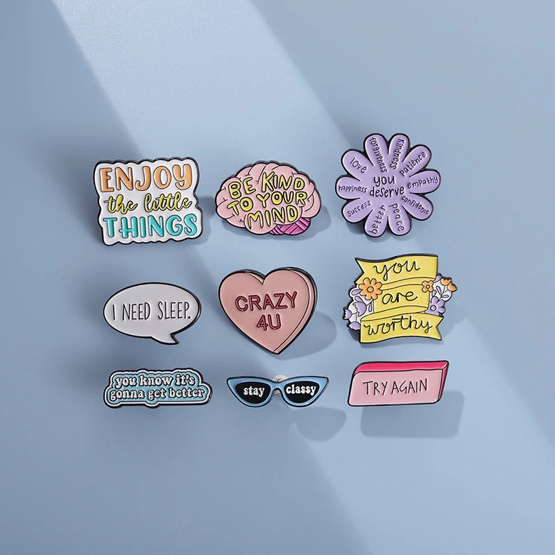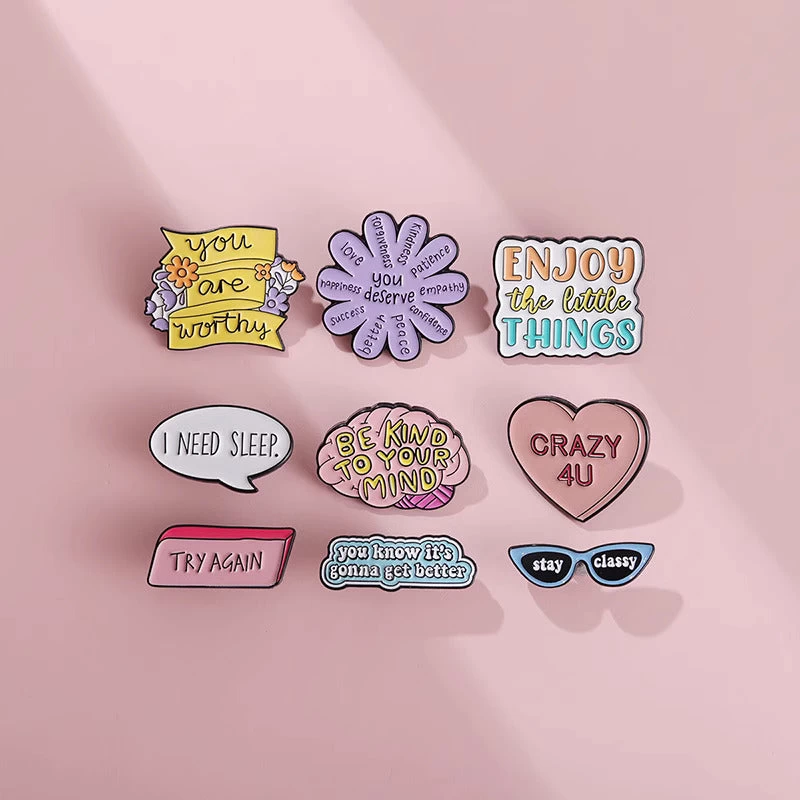This pins is designed to inspire and motivate you throughout the day. It features a collection of powerful English sentences that serve as reminders to stay positive, focused, and driven. Wear it on your lapel or attach it to your bag as a constant source of inspiration. This pins is perfect for anyone looking to add a touch of motivation to their outfit and their day.