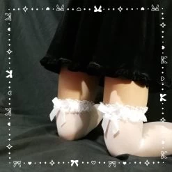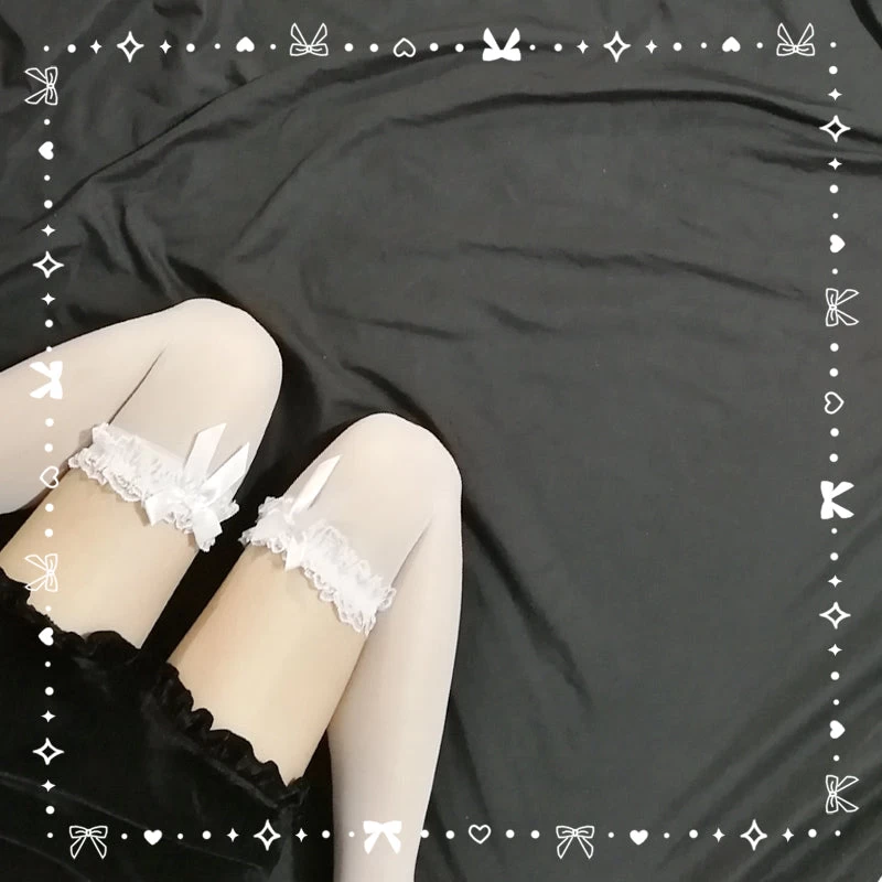 Kawaii Lolita White Ribbon Over The Knee Socks