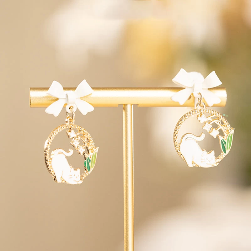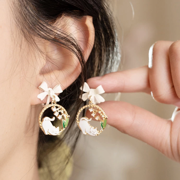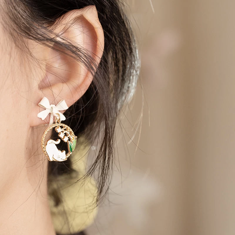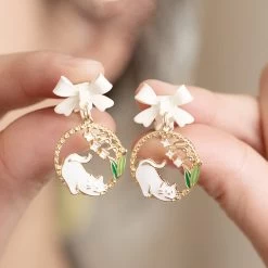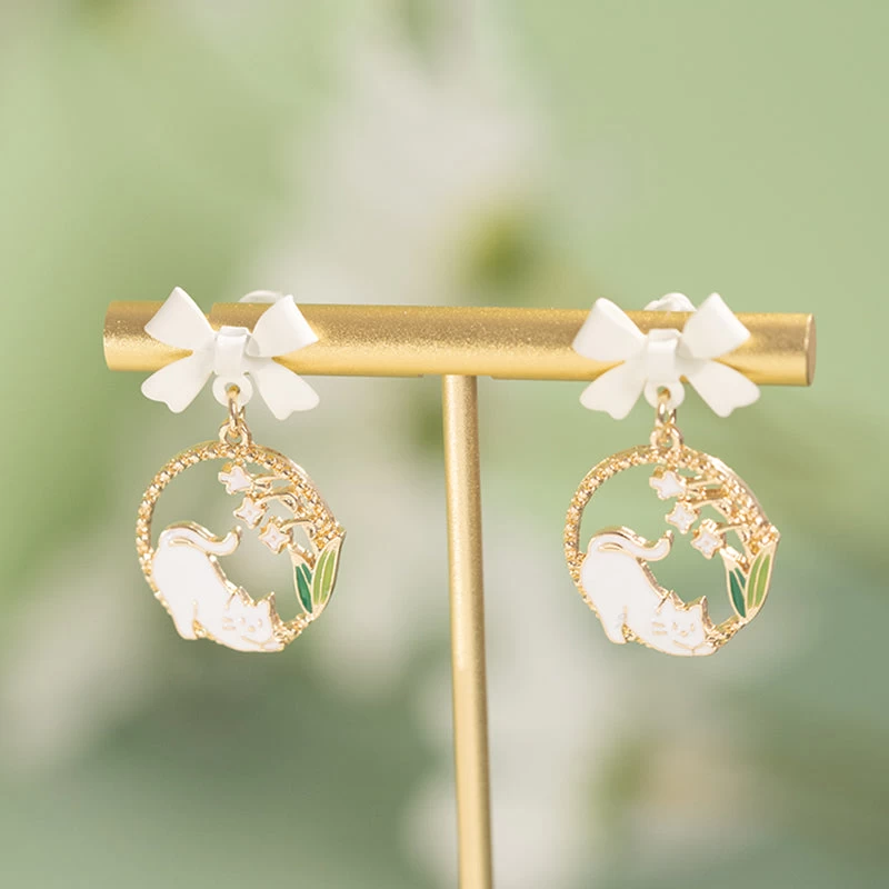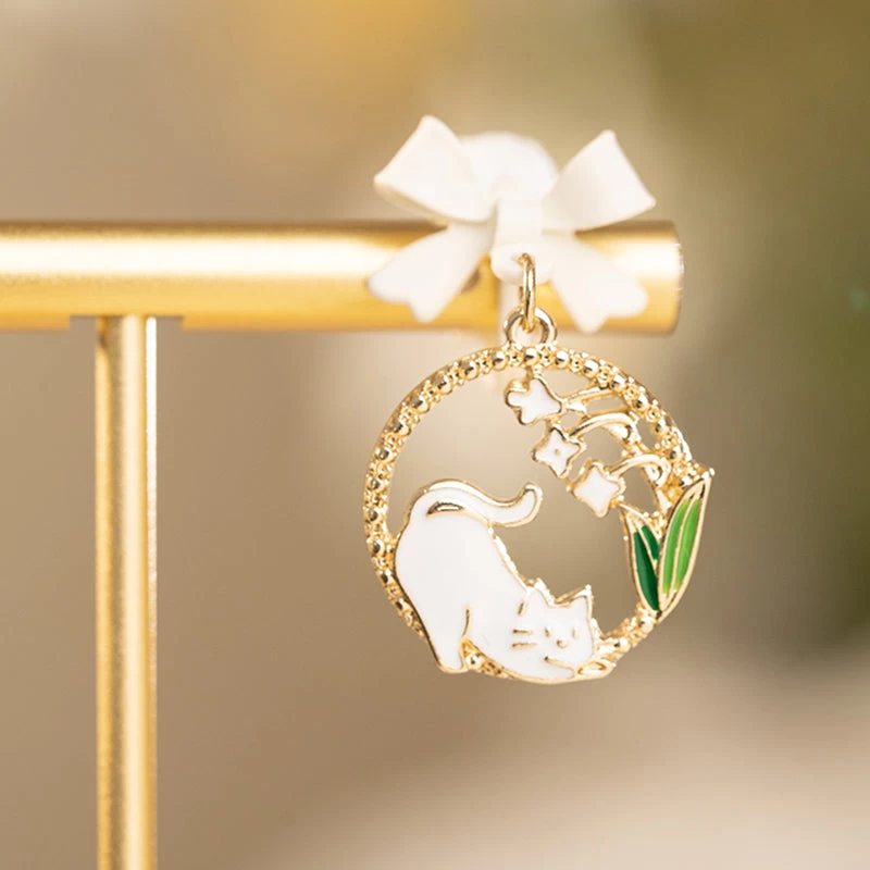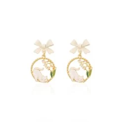 Kitty Lily Of The Valley Bowknot Silver Stud Earrings