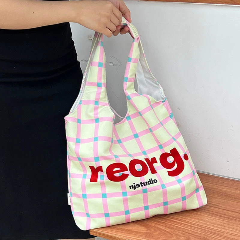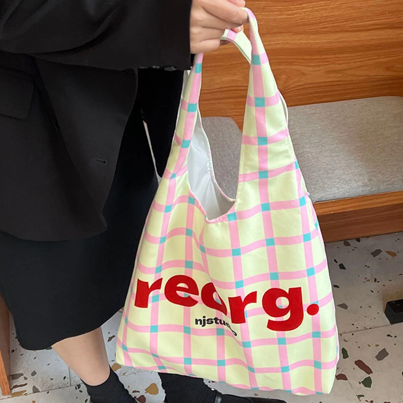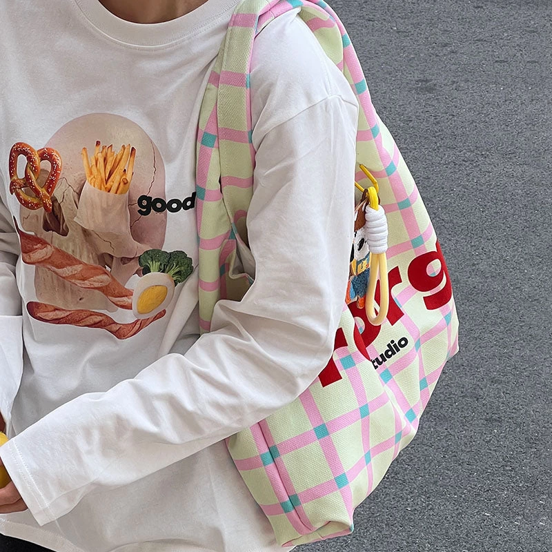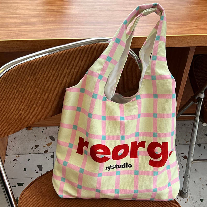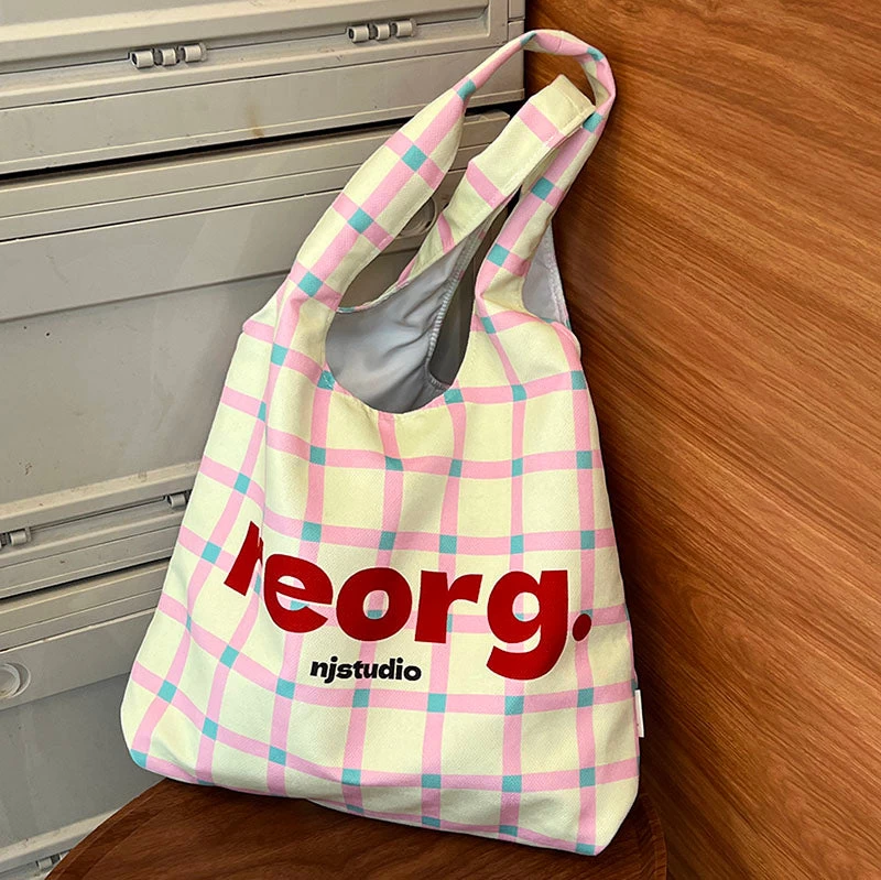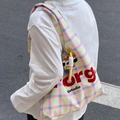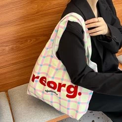 Letters Plaid Printed Tote Bag