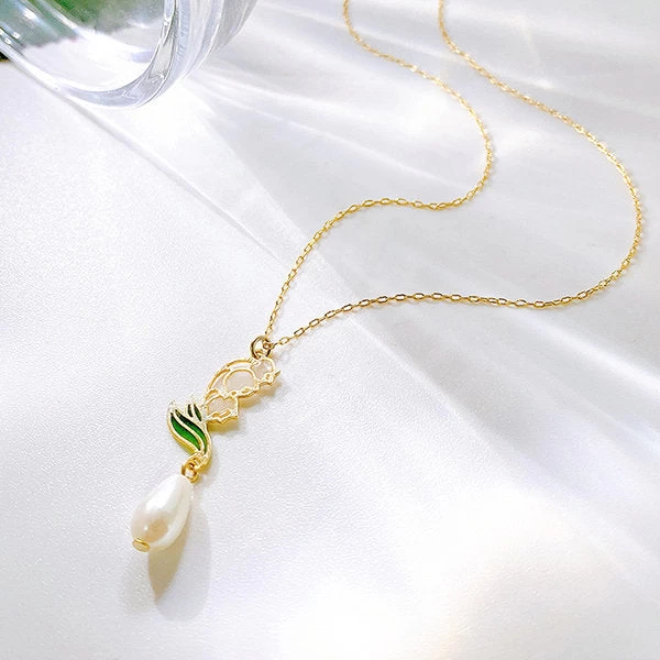 This necklace is inspired by the lily of the valley, symbolizing rebirth, purity, and the beauty of first love. The selected pearls blend perfectly with the shape of the lily of the valley, reflecting both nobility and gentleness. Whether for special occasions or daily wear, it adds a touch of elegance and romantic flair to the wearer.
