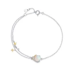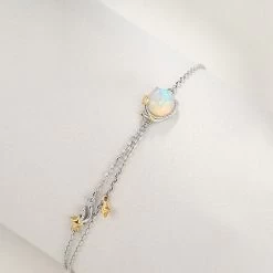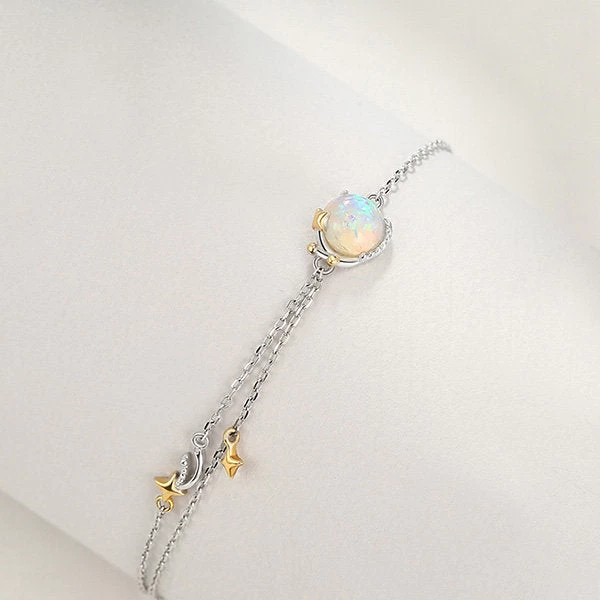 Great for both everyday ensembles and special outings, this Opal Bracelet features a man-made opal stone on a dainty silver chain with pops of gold. The outstanding opal stone glimmers with hints of blue and baby pink.