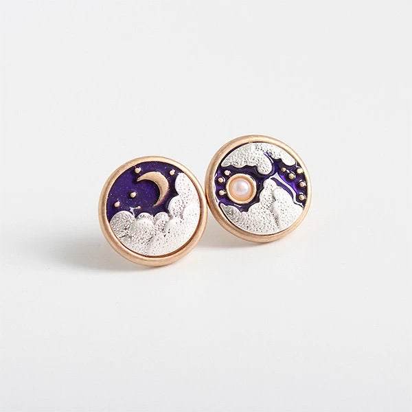 The Sun and Moon Enamel Earrings offer a simple design that speaks volumes about your love for Mother Earth. Each set of stud earrings features one earring with a sun and clouds and another with moon and clouds. Choose from four bold color designs to create your perfect look wearing the Sun and Moon Enamel Earrings.