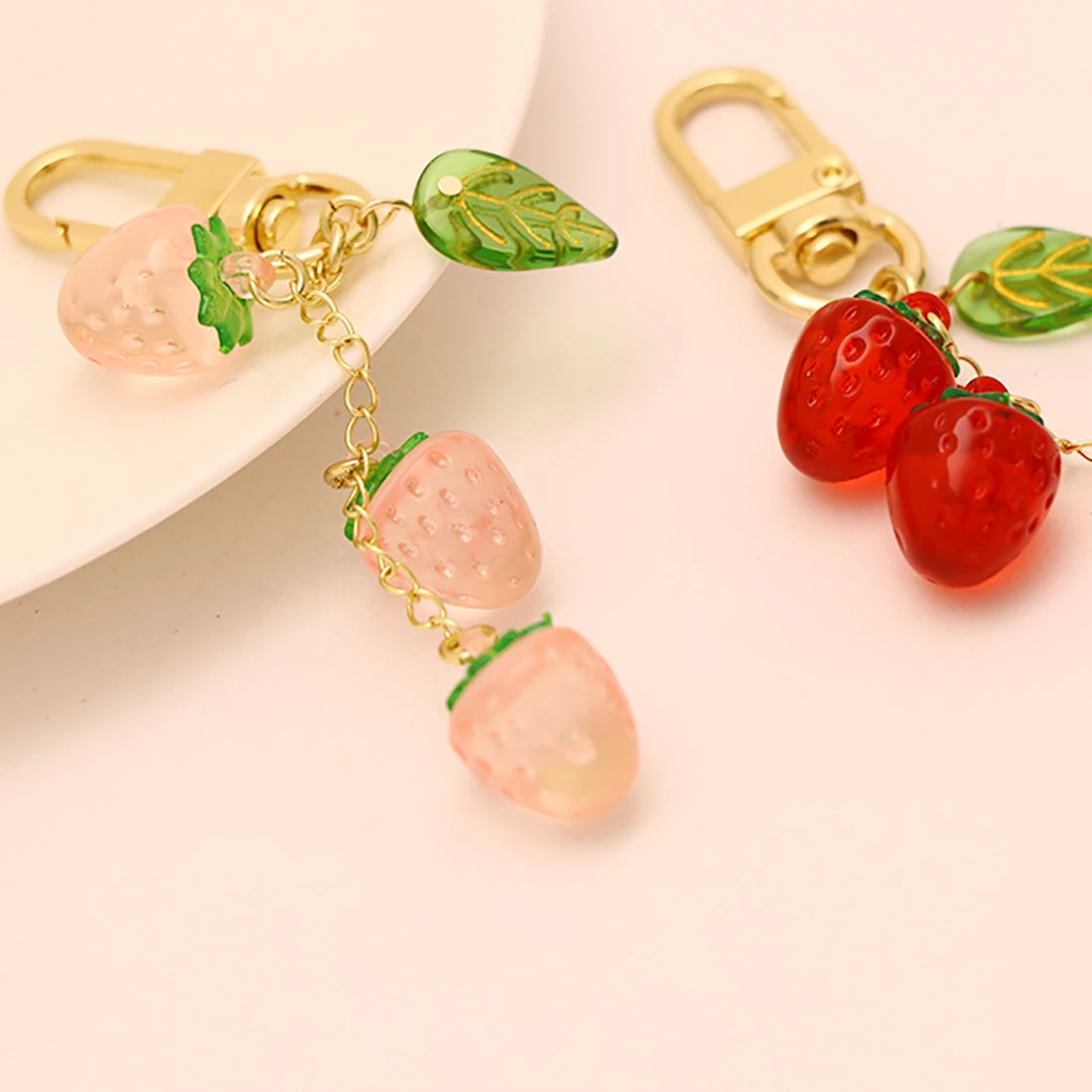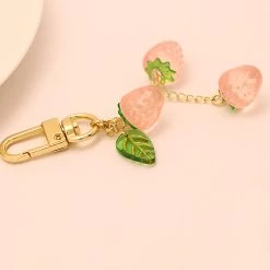 Sweet Pink Red Strawberries Keychain