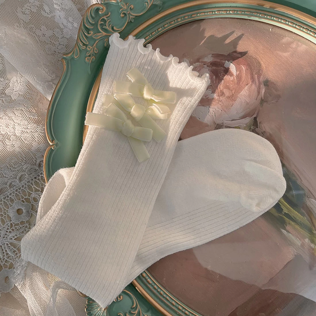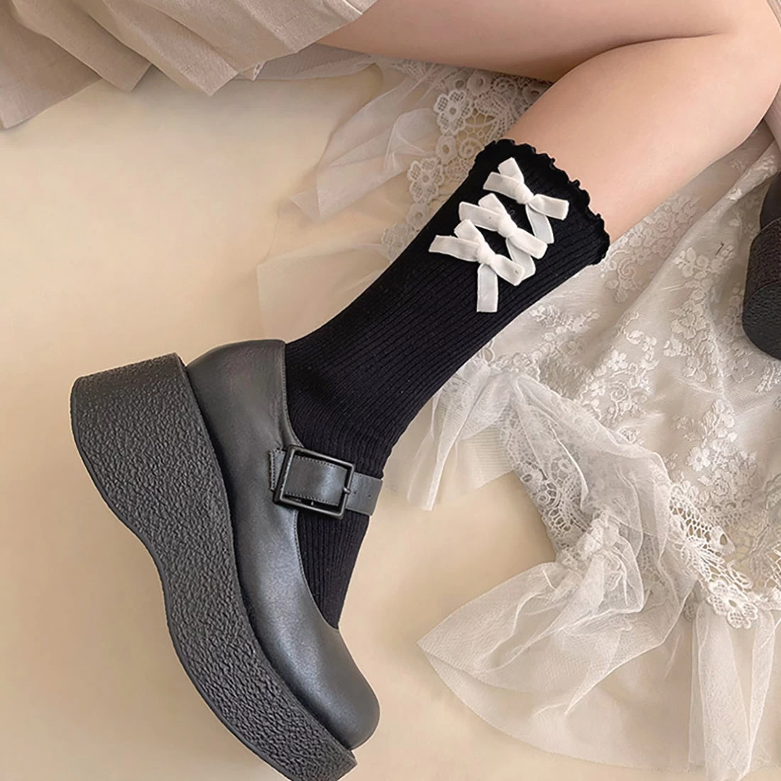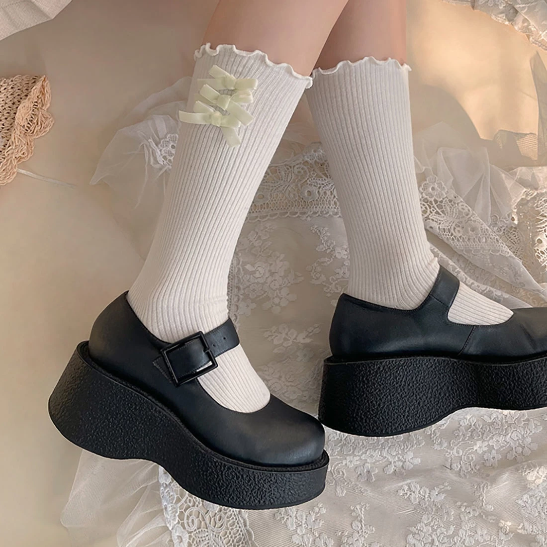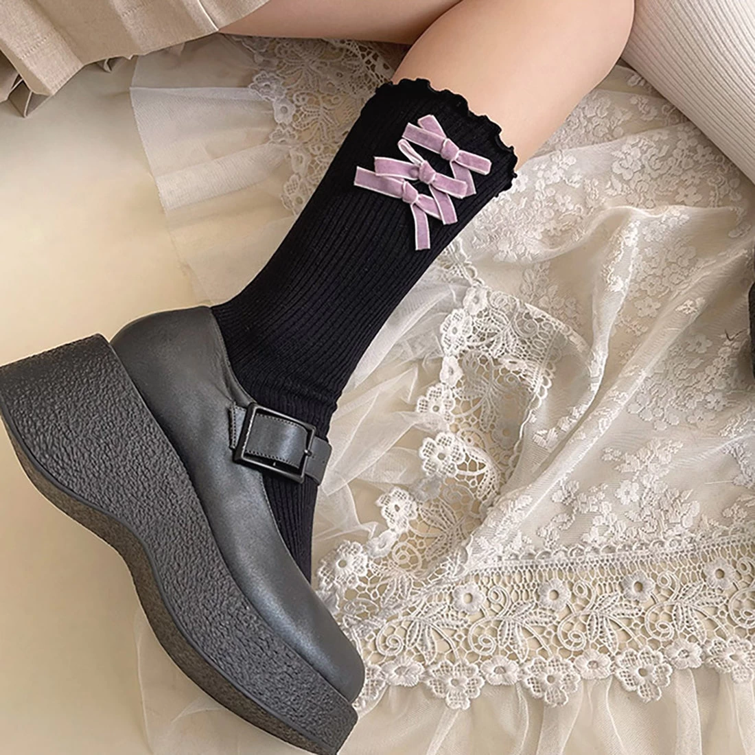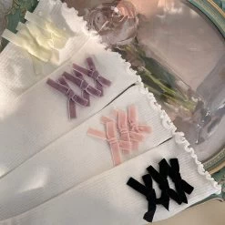 Velvet Bowknots Cotton Lolita Stockings